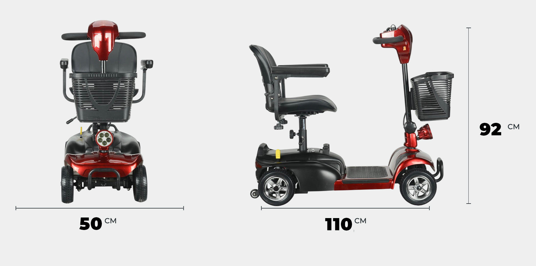 Der BULLBIKE Valencia besticht durch seine kompakte Größe von 110 x 50 x 92 cm, die es Ihnen ermöglicht, ihn mühelos durch schmale Gänge oder kleine Räume zu manövrieren. Dank seines zerlegbaren Designs kann das Mobil für den Transport leicht in mehrere Teile zerlegt werden, wobei das schwerste Bauteil nur 13 kg wiegt. Dies macht den Valencia zu einem idealen Begleiter für unterwegs, da er problemlos im Kofferraum eines Autos transportiert werden kann.