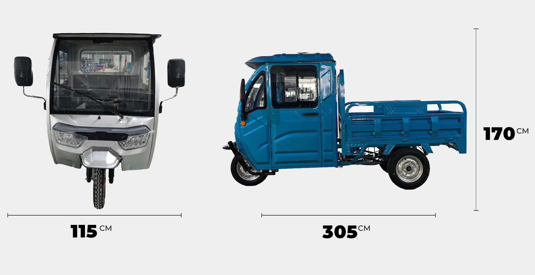 Fahrzeugtyp Dreirad im Stil der Piaggio Ape, aber mit Elektroantrieb